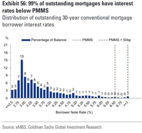 It remains to be seen how this latest rise in rates materially affects the demand side of the housing equation. What does seem clearer at this point is that supply will continue to be highly constrained until rates come down. After so many years of rock bottom rates, the vast majority of homeowners currently have a rate so favorable that selling and facing the prospect of buying at a considerably higher rate is a significant barrier to improving our inventory levels. 99% of homeowners have an interest rate below 6% and 70% of homeowners have a rate below 4%. This "lock-in effect" will likely continue to keep a high floor on prices.